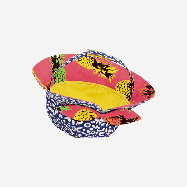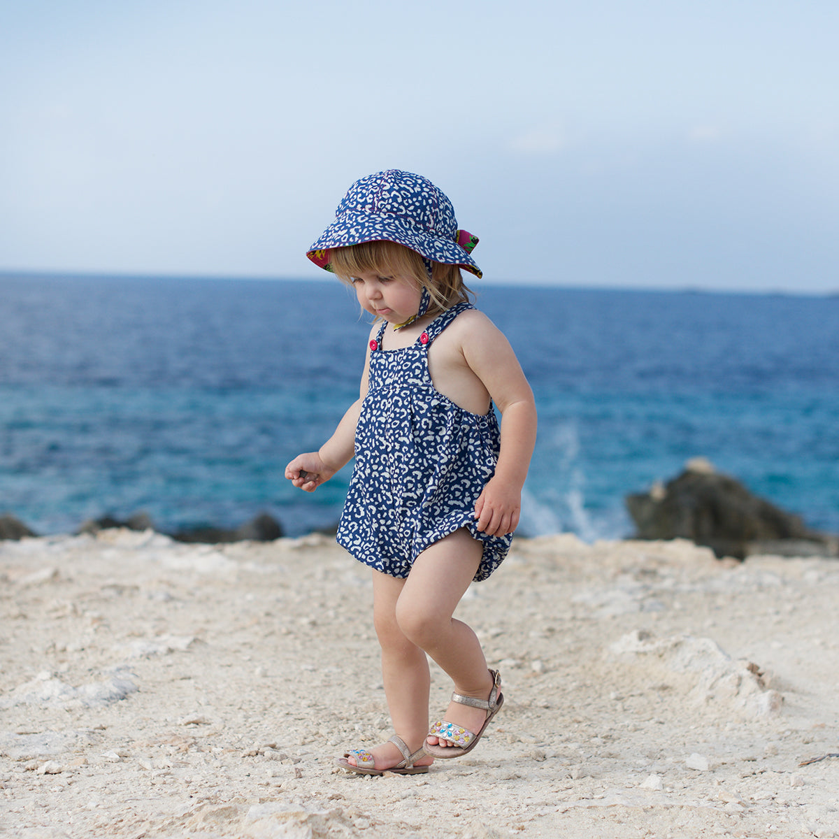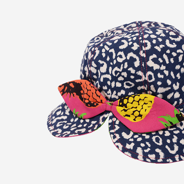 This blue leopard print is trimmed with pink pineapple print for an extra pop of colour and  is perfect for tiny sunshine style.