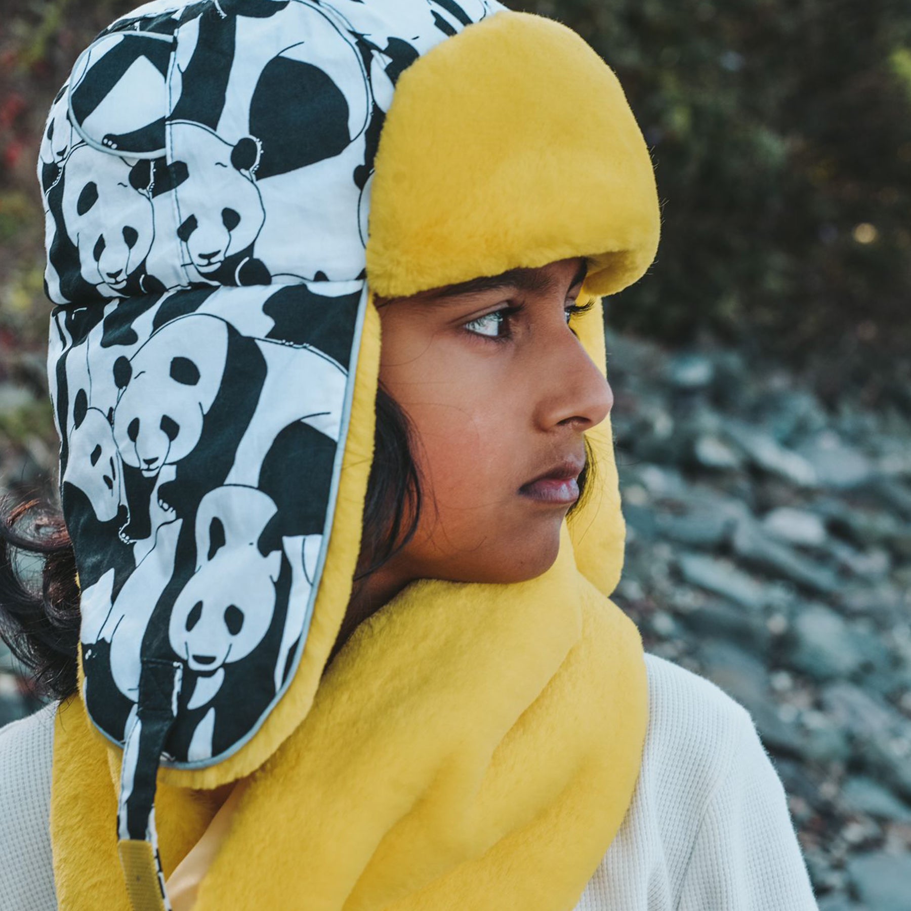 Love our scarfs? Why not try a matching kids hat like Panda Pop in yellow.