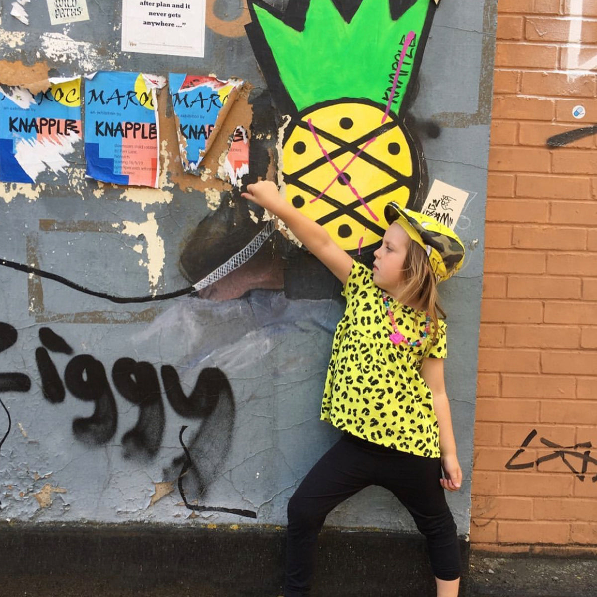 This yellow  LHW BananaSplit print is trimmed with green camo  print.