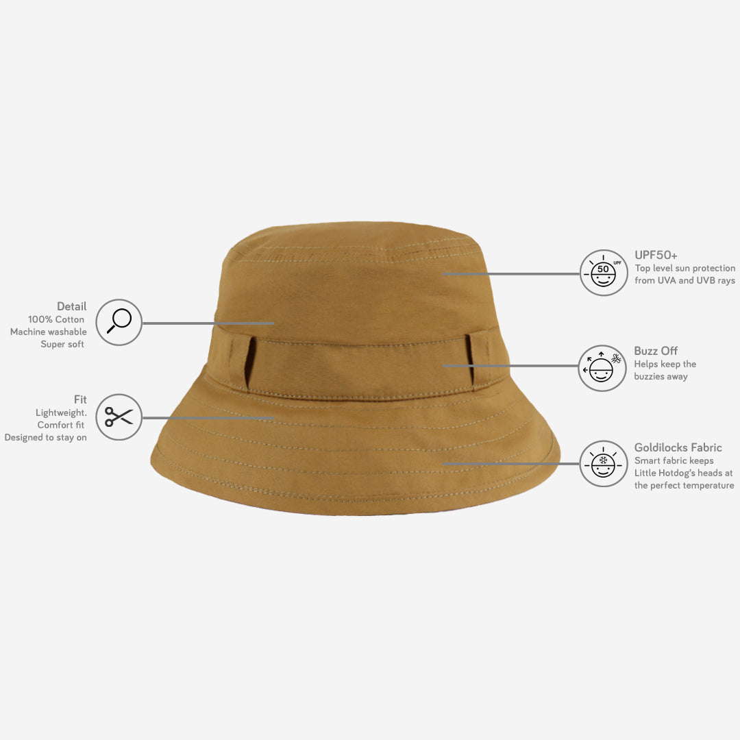 The Adventurer bucket hat is designed for all your summer adventures, with a soft brim all the way round with reinforced stitching to hold its shape and shade the face. The brim can also be turned up perfect for in a car seat or carrier.