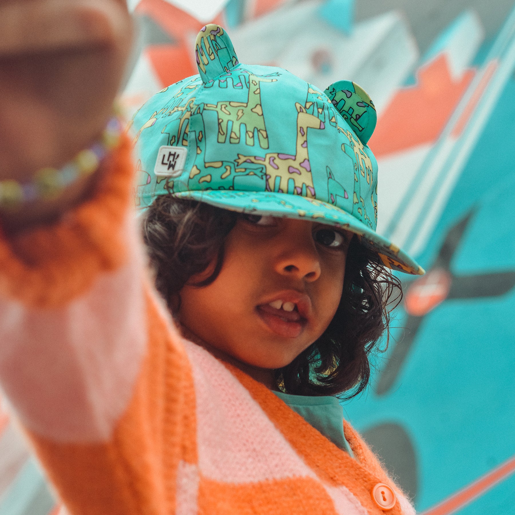 Little Hotdog Watson cuts our printed fabric in two directions so that we reduce fabric wastage and each hat is unique just like kids. Any smaller leftover fabrics are utilised in our cute ears and straps to minimise our environmental footprint.