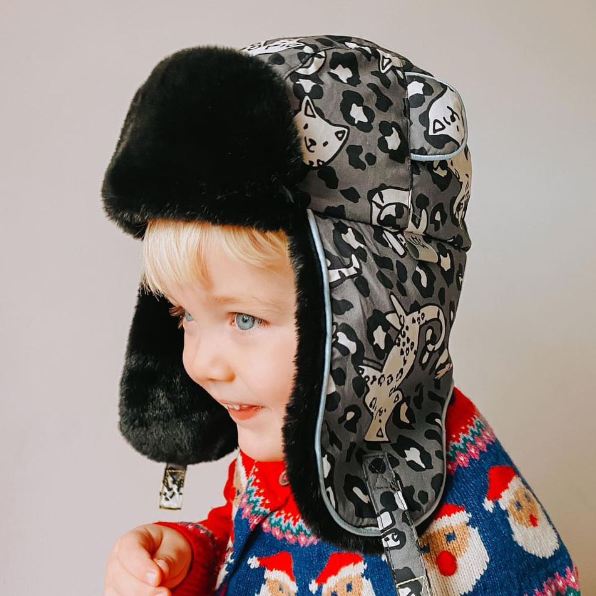 This Snow Leopard is lined with black faux fur. The Arctic Cub is also available in multiple colours and prints to suit your little one’s style.