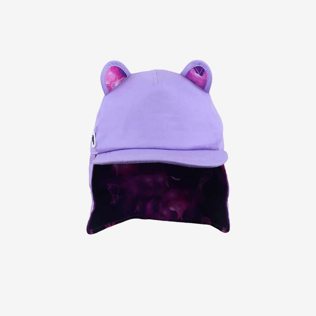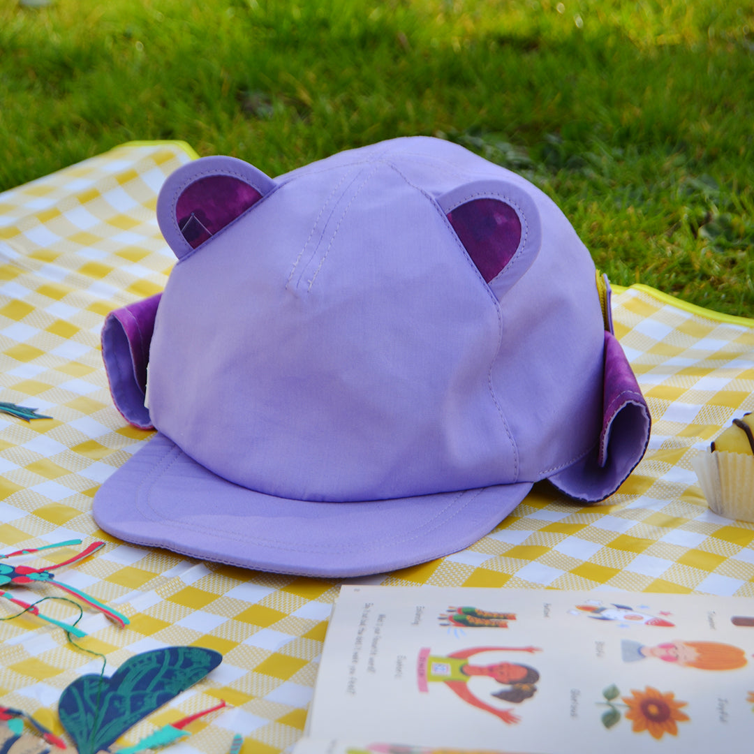 The cub sun hat is designed for all your summer adventures, with a soft brim to shade the face. The cub features hidden neck protection with a roll up flap that can be rolled down on very sunny days. This provides extra protection to  little ears and the neck. The Cub sun hat  also features two little cute ears on top.